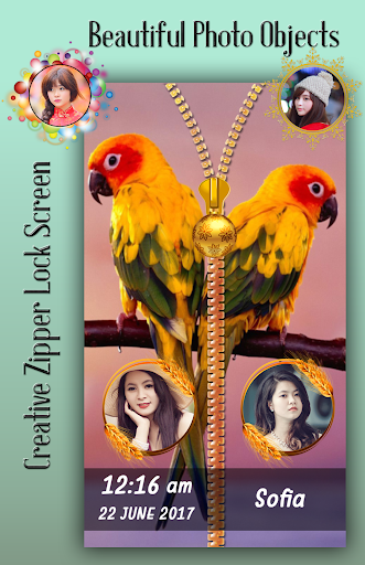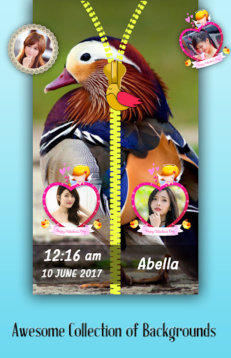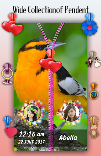 Best part of zipper lock screen is you can set couple photo on lock screen with awesome and creative objets. Even write your name on zipper lock screen. you can use it as couple zipper lock screen