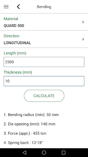 Q Calculator helps you to find all the optimal parameters for cutting, bending, welding or machining Quard® (abrasion resistant steel) and Quend® (high yield strength steel).