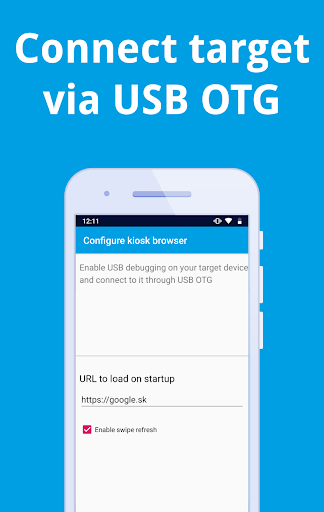This app allows you to install and configure kiosk browser with locked screen into your other dedicated