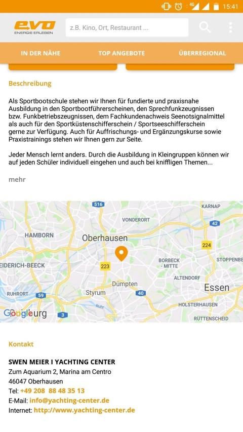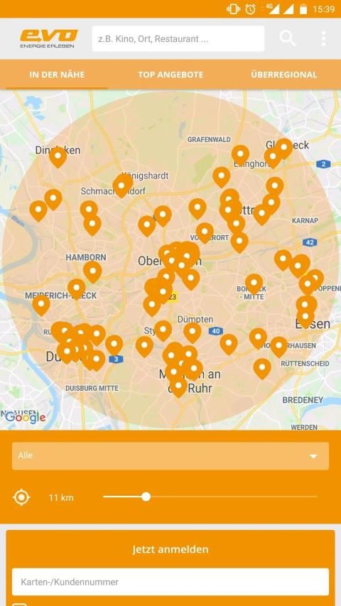 - Lassen Sie sich per Routenplanung direkt zum evo-Card-Partner lotsen.