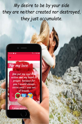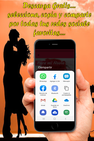 Beautiful application to give postcards with phrases and poems to our beautiful women who deserve that and much more, with more than 30 poems inspired by them and more than 20 images to dedicate, all the images are compatible with android operating system and can be shared from your smartphone by whatsapp or by all means of communication