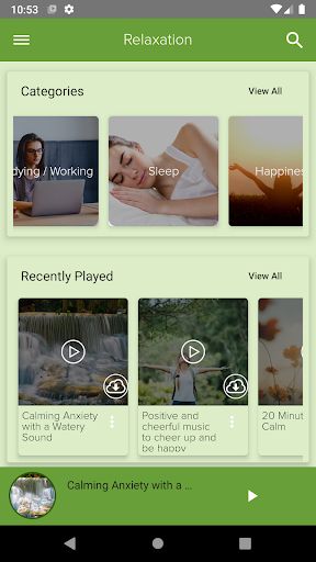 With this app you will find the best instrumental music, incredible nature sounds, meditation music and much more. Download it and dive into the magical world of Relaxing Music.