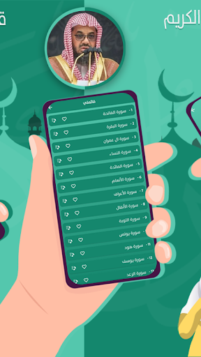 ✔ أن تحمل اي سورة على الجهاز والاستماع لها بدون نت او يمكنك أن تضيف اي سورة الى قائمة المفضلة.