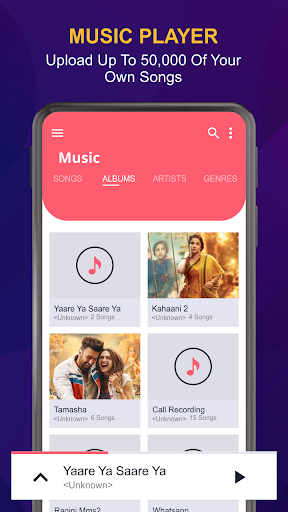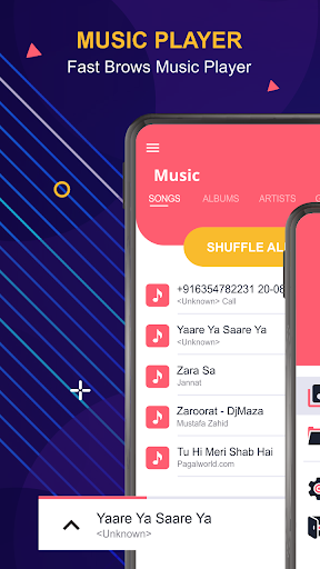 Control of all features in a single with pagination feature in which users can swipe to interact with Playlist, Songs List, Album, Artist, and Folder of all tracks. You can manage your music files easily, Search feature helps to find all the music on your phone in simple listings.
