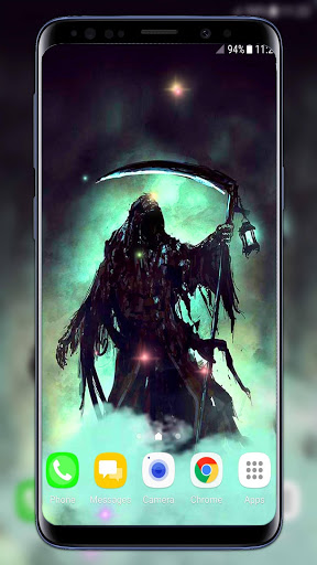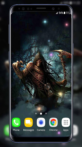 Get this free Skulls Live Wallpaper and set the “angel of death” for home screen! The greatest “scary wallpapers” with The Reaper will be a perfect decoration for every person who likes horror movies. He will reap your soul and take it gently without pain! The “Grim Reaper LWP” will bring the mystical touch on your phone! Cover your cellular with the best “dark wallpapers” with skull images! This “death skull wallpaper” is all that you need! Have your own villain superhero on you phone and let him protect you from itself! Go back to black by setting these “death live wallpaper”!