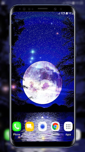 Turn day into night with new moon live wallpaper! A good background app like this shows up on the market once in a blue moon. So grab the chance and get this marvelous "moving background" for free right now! This animated wallpaper offers beautiful pictures of the moon, stars and night sky that will embellish your phone or tablet screen and make it a real treat for the eyes! You can also "create your own background" and give your mobile device personal look. Enter the place where evenings are always bright and magical with the best wallpaper app. Find your inner peace and tranquility in the starry night with your beloved and feel love in the air! Download "Moonlight Live Wallpaper HD" and get ready for a romantic night under the moon!
