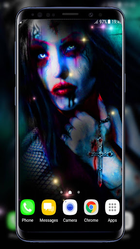 Vampire Live Wallpaper - If you believe that vampires live – you are at the right place! This beautiful Vampires Live Wallpaper HD with realistic pictures of bloody vampire will make you sure in that! Make your screen look gothic with the best vampire images on the play store. Experience the paranormal romance with vampire girl photos. Watch the vampires fall on your screen and get into cool mood. If you like tales of dark fantasy and to watch scary movies, this “HD vampire wallpaper” is all that you need. Don't be afraid and don't make a scary face when you see these spooky pictures of vampires sucking blood. They won't leave a blood teeth marks on your screen! Download free scary live wallpapers and let the horror begin! Set the most scary horror background on your desktop screen and make your smartphone look awesome! The coolest wallpaper will perfectly suit to your phone background. Flying bats will be flying all over your screen, so you will have an impression that you are a part of this scary world.