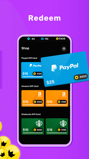 ✓ Exchange your coins for any rewards: gift cards or real cash prizes 🤑