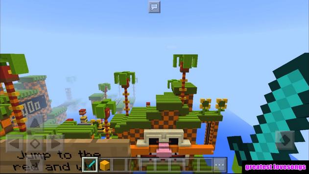 Have a close look at a great parkour map for Minecraft Pocket Edition- Sonic the Hedgehog (Parkour) map. As a speed platform game, this map provides a variety of effects to players, including jump boosts and speed. Invite some friends to compete interestingly in this game.