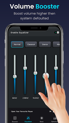 Volume Booster - Equalizer FX is a powerful but easy to use equalizer with Bass Booster, Volume booster and virtualize effects, which can improve the sound quality of your Android phone or tablet device with amazing sound quality. An equalizer not only makes your phone’s volume louder but also offers an enhanced music experience.