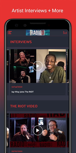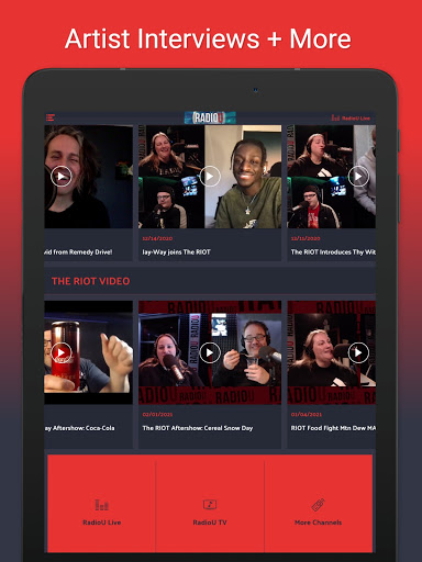 Listen live 24/7 and watch music videos on RadioU TV. Stream The RIOT with Obadiah and Nikki, the Most Wanted countdown, hip hop and electronic dance music on RadioU Fusion, and metal on RadioU Battery. Plus RadioU's Insider music news, band interviews, and more.