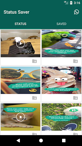 Whatsapp Status Downloader Saver lets you download Photos, Videos, GIFs status of your friends very easily. You can share these photos, videos, GIFs right from the app to your friends.