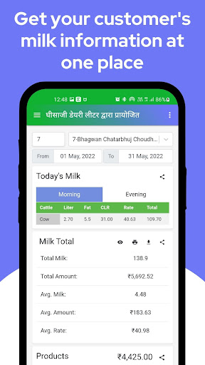 The liter is an Application that can be used by Dairy owners who are collecting milk in villages as well as by dairy owners or persons who are selling milk in cities, also normal people who want to maintain their milk purchase records can also use this application.