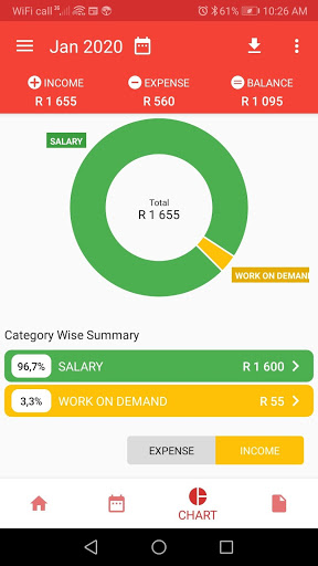 Tracking all your expenses and incomes so as to put you on the path to financial stability and Tracking expenses and incomes by week, month and year as well as by categories.