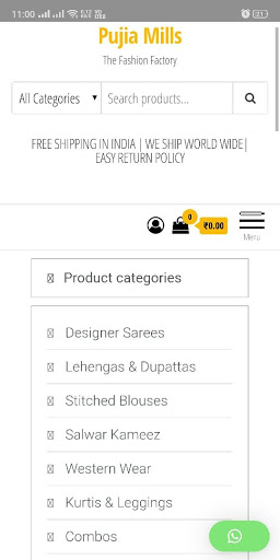 Sarees: The Ethnic Wear Shopping App of Sarees in pujiamills.com is quite versatile with its designs. It has fabrics like Georgette, Chiffon, Poly Georgette, Silk Blend, Cotton, Poly Silk, Khadi & Many more. It has design type like Banarasi Silk, Kanjeevaram, Bollywood, Assam Silk, Chanderi, Mangalagiri & many more. So, people who tend to visit at pujiamills.com for the shopping of sarees will have a great experience.