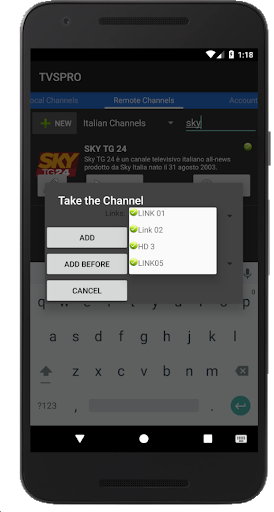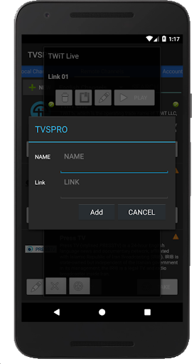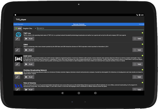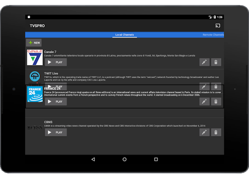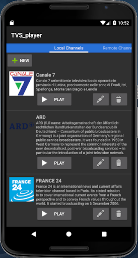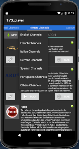TVS_free_player is an IPTV player easy to use: from the channel tab, you can select from a menu list, the preferred country group and after you can easily watch one of the channel by clicking the button play associated. The channel with the selected link can be added to favorite channels.