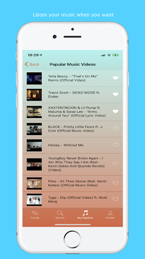 Manage your playlists isn't never been easier. Look for most popular songs, create your playlists and listen your music.