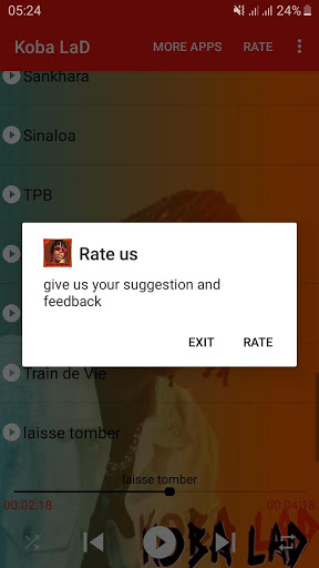 Nesta aplicação, você encontrará as melhores músicas e novas versões do Koba Lad. Baixe o aplicativo gratuito em seus smartphones por um período ilimitado e aproveite as melhores músicas para alta qualidade e sem a internet.