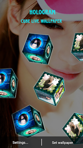 Hologram cube live wallpaper provides different and amazing 3D cubes for making live wallpaper. Hologram Cube Live Wallpaper features a rotating 3d cube showing pictures and photos from your gallery.