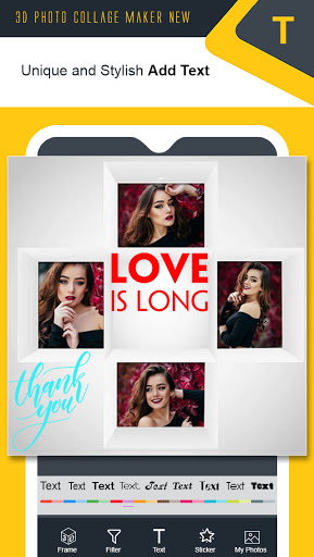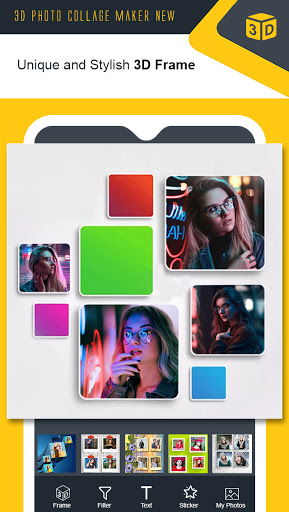 Photo Collage 3D Frame - 3D Photo Creator app you can beautify your photo in 3D style. beautiful 3D Templates to make great-looking your photo in this collage frame.