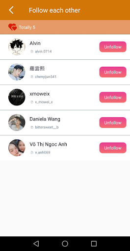 The third function is the main page is your fans who you not follow back, you can follow back if you want to be friend with them.