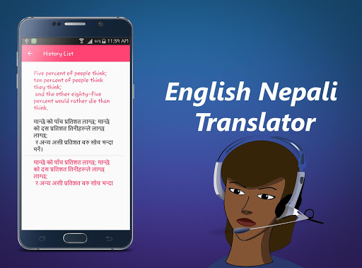 With English Nepali Translator you can easily translate words and text from English to Nepali and from Nepali to English. You are able to translate words and even sentences, in just a split second.