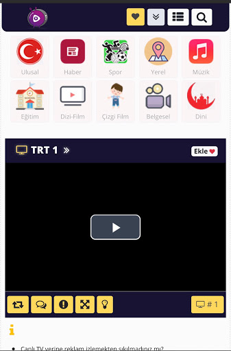 Nuestras categorías, extranjeras y turcas son categorías de radio. Además de todos los canales de televisión en vivo, todos los canales de cine turcas y canales extranjeros están incluidos en nuestra aplicación.