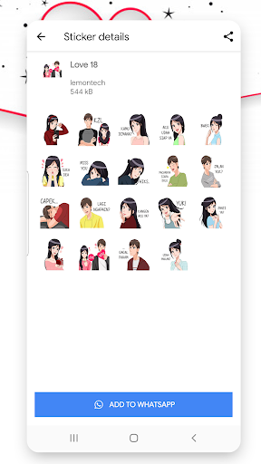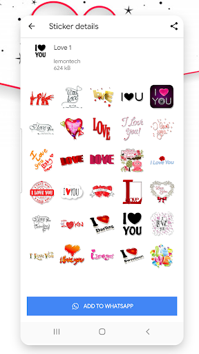 This app is not affiliated with WhatsApp Inc.All the stickers are made by love stickers fans and is not official. if you believe that content infringes your copyright please feel free to contact us.
