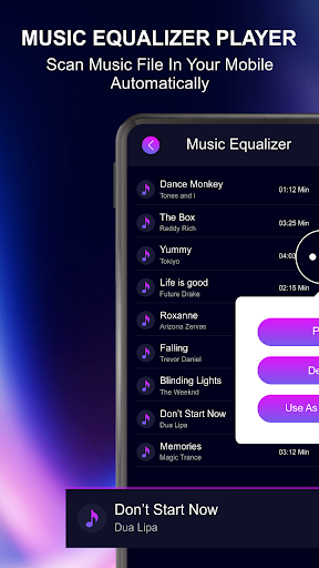is just a music player on the outside. With a trendy design and a powerful music improver with high-quality equalizer, bass booster & 3D virtualizer, you can elevate your experience of enjoying music. If you'd like to enjoy music after a long and busy day, Equalizer Music Player will be a great musical companion. Simple operations make listening to music easy and relaxing.
