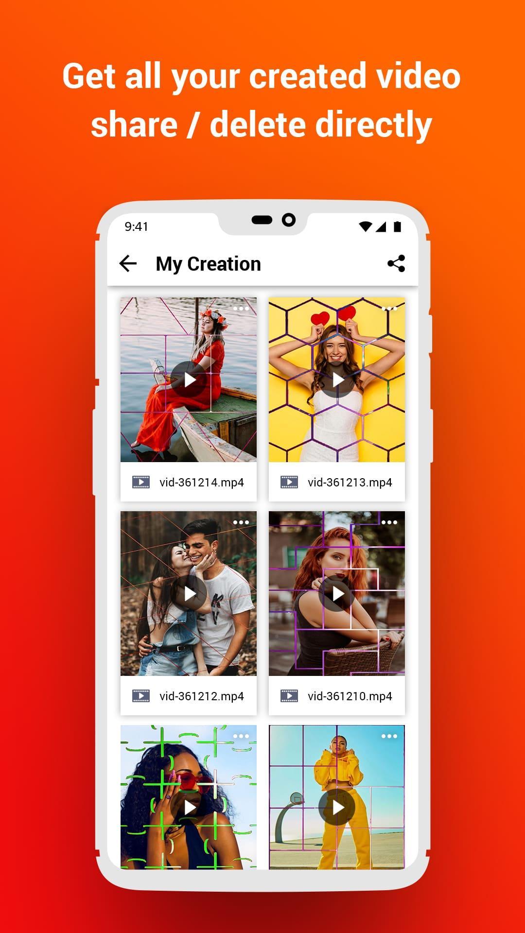 You can instantly create birthday videos status, anniversary videos status, love videos status, holiday videos status, baby videos status, wedding videos status, video maker of photos with music, musical video status and many more in just a few steps with the help of this Video maker app.