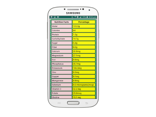 Dear user, At present you should know the healthy food and its nutrition facts.So you can download this apps from play store. Its free to use. So, You can know which fruits what kinds of vitamin and health benefits available. In this apps we added nutrition facts chart, which you can understand very easily. So, download now and enjoy its.