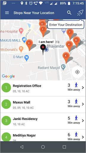 >User can able to select any bus route as per their travel plan/ requirement from the listed services available from that bus stop.