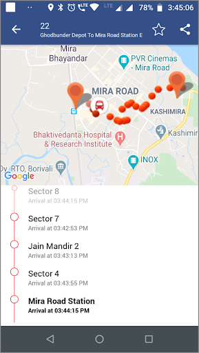 >User can see the last stop of the bus as well as expected time arrival of the selected bus at all upcoming bus stops.