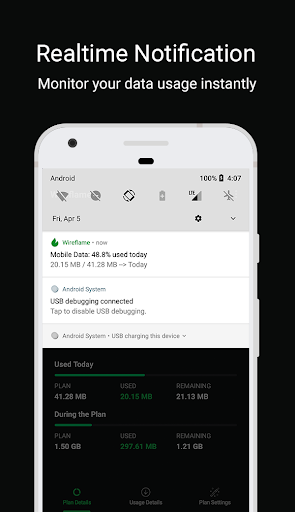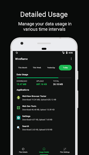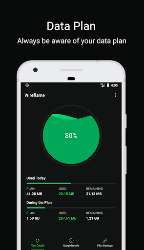 Wireflame is a smart app to monitor and take control of your mobile data usage per application. You can instantly see what apps are slowing your phone’s internet connection or wasting your mobile data. Additionally, you can set your mobile data plan and check daily.