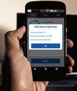 RAM Booster up can improve the speed of your device during game sessions after it has cleared up any intensive resource draining apps that are running in the background.
