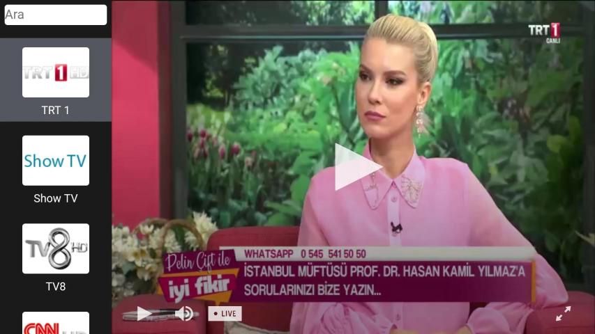 – Tüm Canlı TV kanallarını listeleme