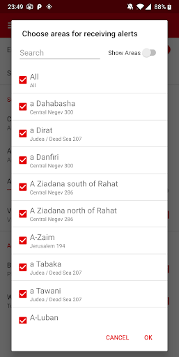 Added option to receive alerts for areas