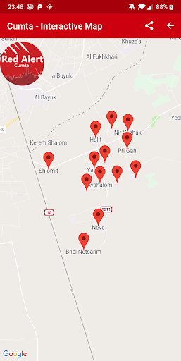 Welcome to Cumta - Red Alerts. Cumta is a system that warns about Red Alerts (Rocket Sirens) in Israel, in real time.