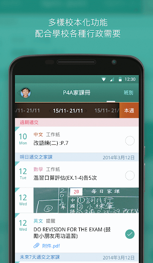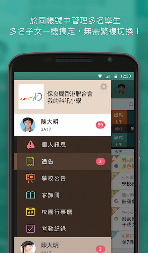 配合 myIT-School 內聯網及智能訊息發佈中心,校園資訊便能第一時間傳送到家長的智能手機之中,令家長更實時地了解子女的校園生活。 功能包括: - 家課冊、學校公告、通告及個人訊息顯示 - 主動訊息通知,配合雲端處理,實時 Push Notification 服務 - 可閱讀多名子女的訊息 - 支援文字、圖片顯示和附件顯示 * 支援 Android 4.0 或以上版本