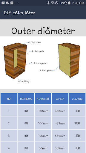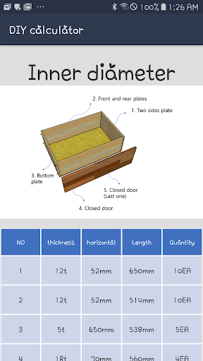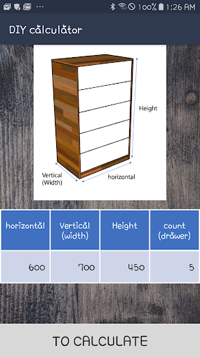 Launch the app and enter the width, height and height of the chest of drawers.