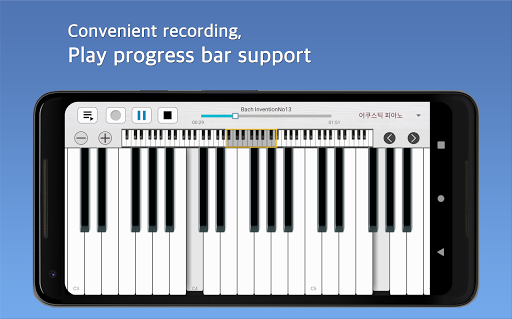 Tiny Piano will the development of the your musical abilities. Features: * recording & Play * 88 Keys * Multi touch * 128 instruments * Glissando * Quick touch * Adjustable piano size * Good audio quality