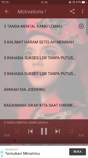 App ini berisi motivasi dan insiprasi yang dapat diputar secara offline. selain itu juga Anda dapat menjadikan motivasi dan insiprasi yang terdapat di pemutar digunakan sebagai nada dering, nada pengingat pesan, dan nada alrm. App ini berisi sosial media dan video yang dapat dinikmati secara online oleh Anda untuk menambah informasi motivasi dan insiprasi Merry Riana yang anda perlukan.