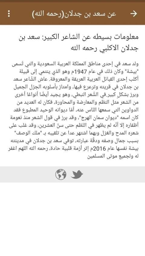 يحتوي هذا التطبيق على اجمل القصائد للشاعر سعد بن جدلان رحمه الله