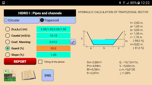 Program for design and dimensioning channels (trapezoids, triangular and prismatic) and / or pipes.