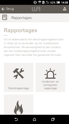 Met Mijn WA kunnen medewerkers, klanten en geïnteresseerden informatie vinden over WA Security Services. Medewerkers kunnen vanaf iedere locatie contact houden met de juiste personen in de organisatie, rapportages invullen, navigeren naar noodzakelijke bestemmingen en beschikbare informatie inzien. Middels Interactieve meldingen blijven medewerkers altijd van alles op de hoogte. Klanten kunnen ook rapportages en werkinstructies bekijken.