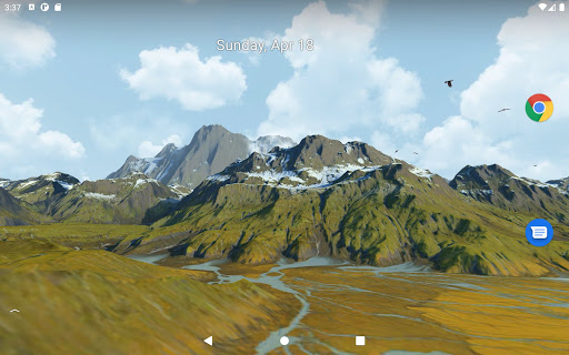 This live wallpaper puts a breathtaking aerial view of a gorgeous mountains to your home screen. Lush green grass of Icelandic meadows is surrounded by high peaks covered in show. This peaceful and serene landscape slowly pans and moves, always showing the beauty of nature from different angles.