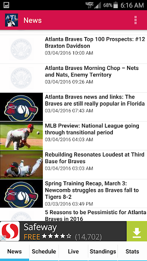 Follow Georgia's team with Atlanta Baseball, an unofficial app about the Atlanta Braves. We keep it simple, with Braves news and opinion, live scores, team schedule with TV info, player stats, and MLB standings.