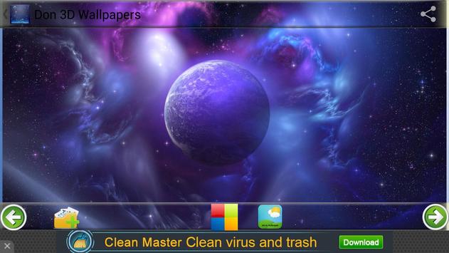 Download and install this App and decorate your home screen.You can change Wallpapers color by color button and can save this wallpaper to photo gallery with the help of a simple touch button.You can Share these Beautiful Wallpapers with your friends.Enhanced User interface with Pinch zoom facility.Set these Wallpapers as your mobile desktop and SMS to your friends. This Don 3D Wallpapers wallpaper has been tested on latest devices such as Samsung Galaxy S3,Galaxy S4,Galaxy S2, Nexus 7, HTC Desire S and Sony Xperia S.We are looking at the wallpapers and background which are in our Pictures folder and remember to share them with you. since it contains some of the most beautiful wallpapers and images of the year. This application is a great way to represent your personality online or offline.If you're looking for a gentile and relaxing new look for your Android phone Don 3D Wallpapers is a great choice.Now add a little flair and individuality to your smart phone and enjoy the time.