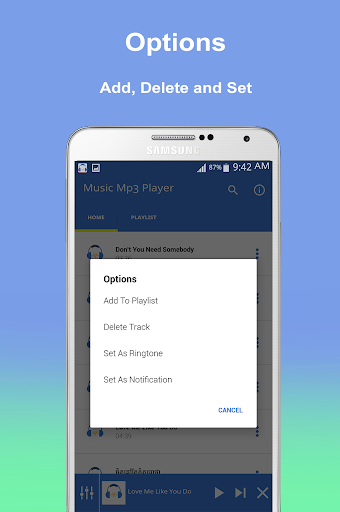 Music Player - Mp3 Player with powerful built-in equalizer will highly improve your sound quality and allow you to enjoy your favorite songs anytime, anywhere. The Music Equalizer enables you to adjust your soundtracks with a 10 band equalizer and enjoy a powerful bass amplifier.