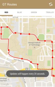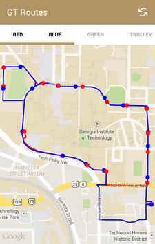 The app will display the seven bus routes offered by Georgia Tech Transportation and it shows the locations of the